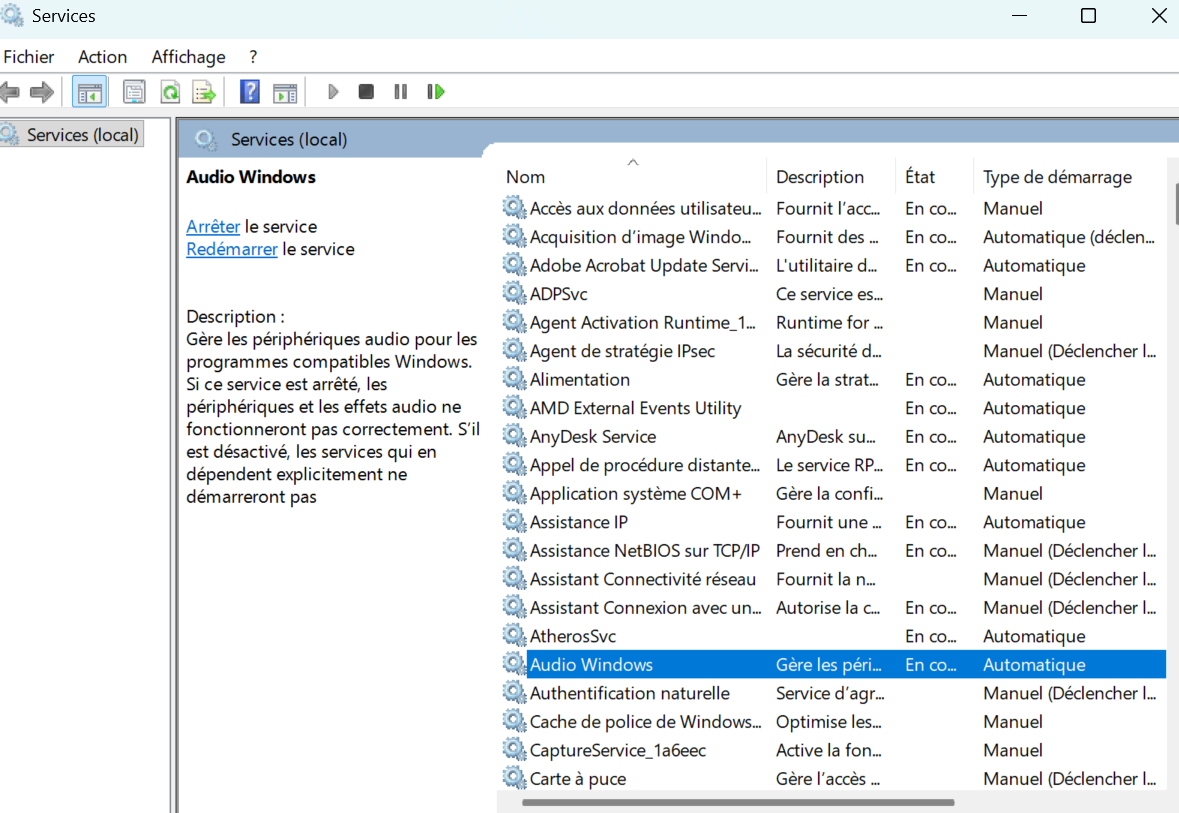 Ma solution : 1. J’ai forcé la réinitialisation du service Audio Windows. 2. J’ai désinstallé le pilote dans le Gestionnaire de périphériques et laissé Windows le réinstaller « proprement » au redémarrage.